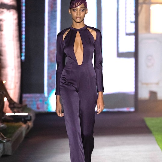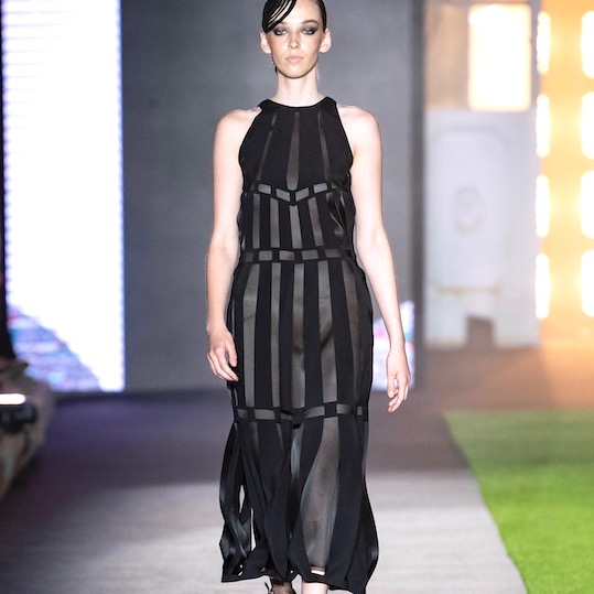 A linear, elegant and sensual collection for a dynamic and glamorous woman; dresses with a Mashrabiyya grids effect of the Middle Eastern architecture for texture as lasered silks and organza to fit a veiled body in shadow.
