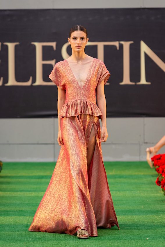 A romantic sunset introduced the elegant and harmonious style in fluid silks and linen. Chromatic solar light colors as yellow, orange and coral fuchsia for "Golden hour" spring-summer 2020 collection. A fascinating, emotional show.