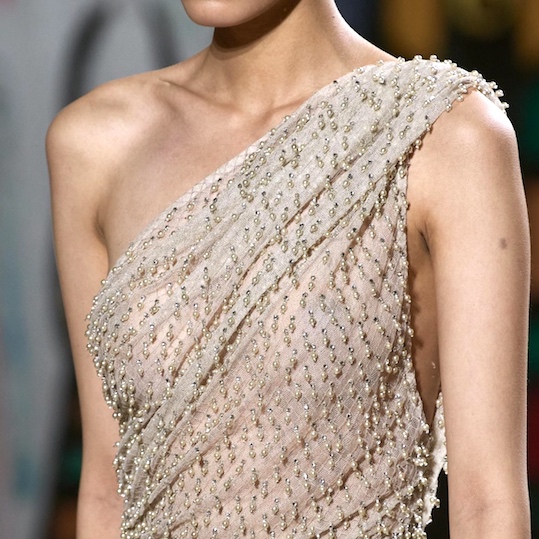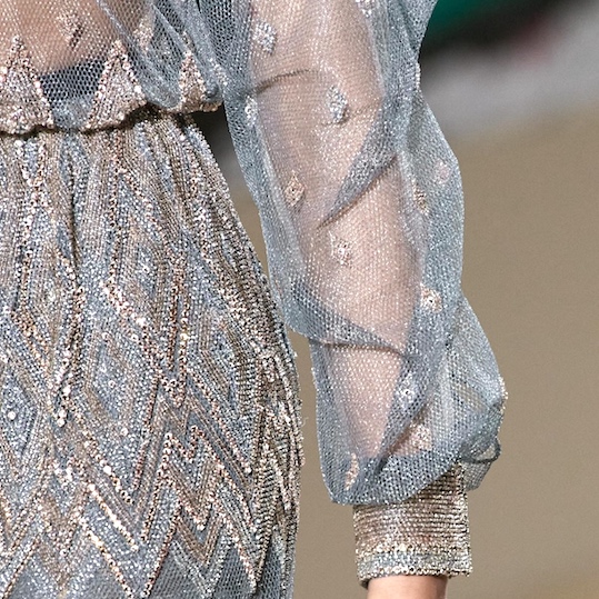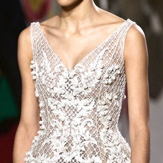Embroidery, luxurious fabrics, passementerie decorate, light tulle, refined embellishments and special details to build an entire silhouette.