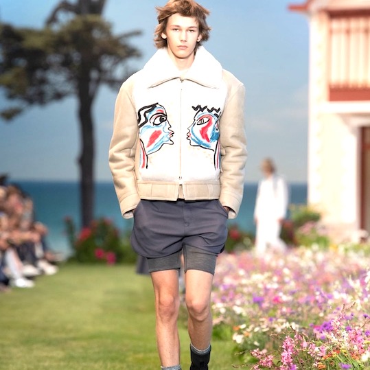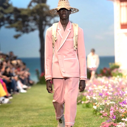 The Dior men summer 23 by Mr Kim Jones is a tailoring collection of many possibility: opening jacket, transparent slices, organza outer layer, lapel sleeve scarf, colorful outwear, sporty style.