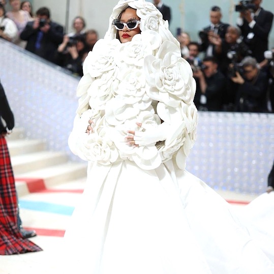 1. Rihanna's dress was designed by Pierpaolo Piccioli: thirty cloth camellias handcrafted by putting together five hundred petals and twenty-five leaves.2