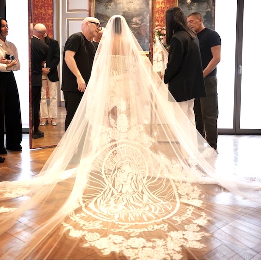 She wore a fabulous wide hand embroidered long tulleveil with a large depiction of the Virgin Mary.