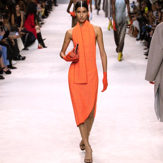 Kim Jones presented a collection of basic and geometric line for a contemporary elegance. Pale colors with a touch of black and orange as predominant-