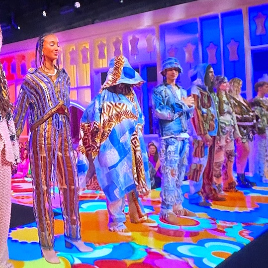 Nigel Xavier, a streetwear designer, inspired by Woodstock because patchworking is his signature. A so impressive final result in total denim look with different fabrications as lace and some fur and multiple knits.
