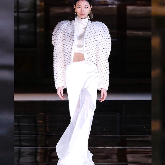 The designer said that his collection was out of this world: butterlfy wings, floral patterns inspired by the idea of seers and oracles and the tea leaves for shor and longer parkas, peacoat and long pencil skirt for a relaxed, elegant evening.