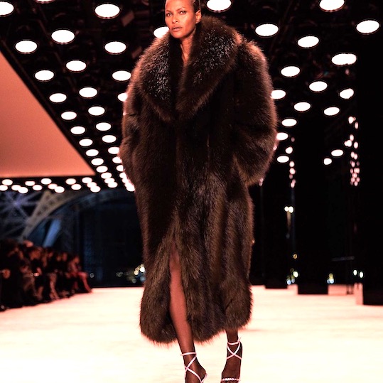A black, elegant, sensual wardrobe of caban, trench, tuxedo, slip dress and fake fur.