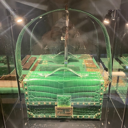 1. Lombardia: Bertoloni Valigeria transforming the Baguette into a miniature trunk in an emerald green precious agate-polished croco;