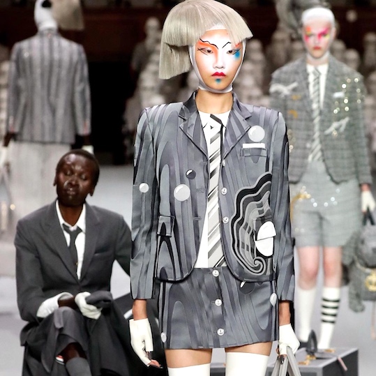 Thom Browne formal introduction at Paris Fashion Week was so impressive: a theatrical show that levered the imagination.The American fashion designer choose Gray as the main color of the fashion show at a train station where the models are passengers.