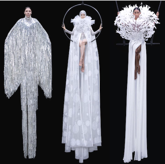 A dream of pure fashion giving way to garments brought to life; models, draped in dresses and hovering above the ground telling a new start, a rebirth.