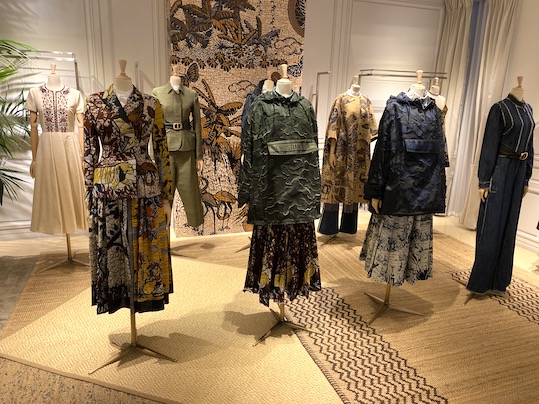 Maria Grazia Chiuri, the Dior creative designer, choose African textiles to talk about Africa because "fashion loves other cultures and can work with other cultures". Specific prints and heavy cotton revisited was used for the bar suite and other pieces.