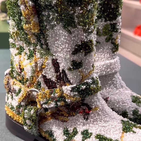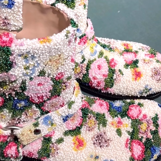 1,2 Squeeze bag hand embroidered with print inspired by an eighteenth century motif