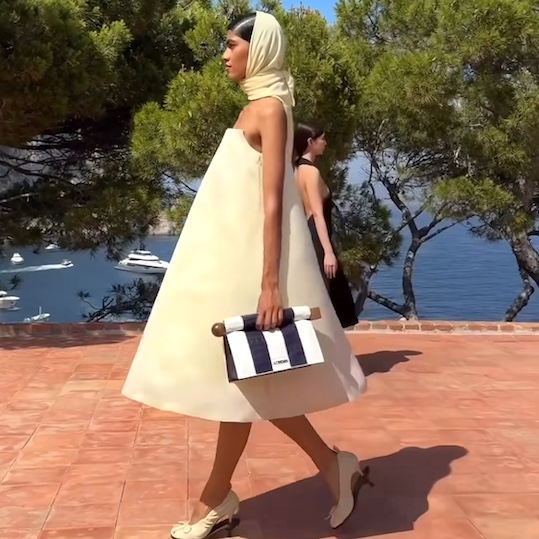 Jacquemus presented ‘Les Sculptures’ show at the La Foundation Maeght in South of France. An art gallery full of sculptures, particularly many of Alberto Giacometti's, was the main inspiration for his collection.