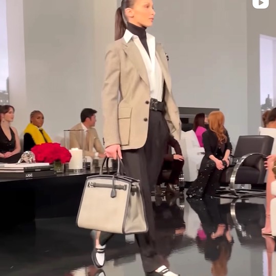 Hadid sisters, Laetitia Casta, Vittoria for the ready to wear collection: tuxedo suiting, the classic RL intarsia monogram and plaid pattern.