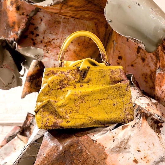 Capucine bag by Kennedy Yanko with her trademark "pain skin" into leather